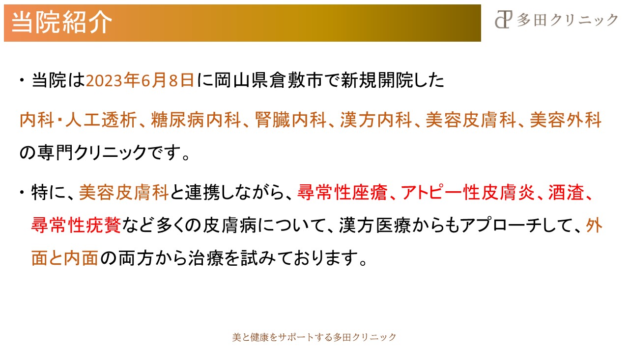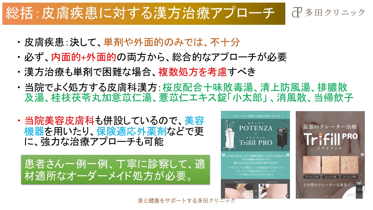ニキビやアトピー性皮膚炎など皮膚疾患で気になる方がいたら、ぜひとも当院漢方外来、美容皮膚科にご受診ください。